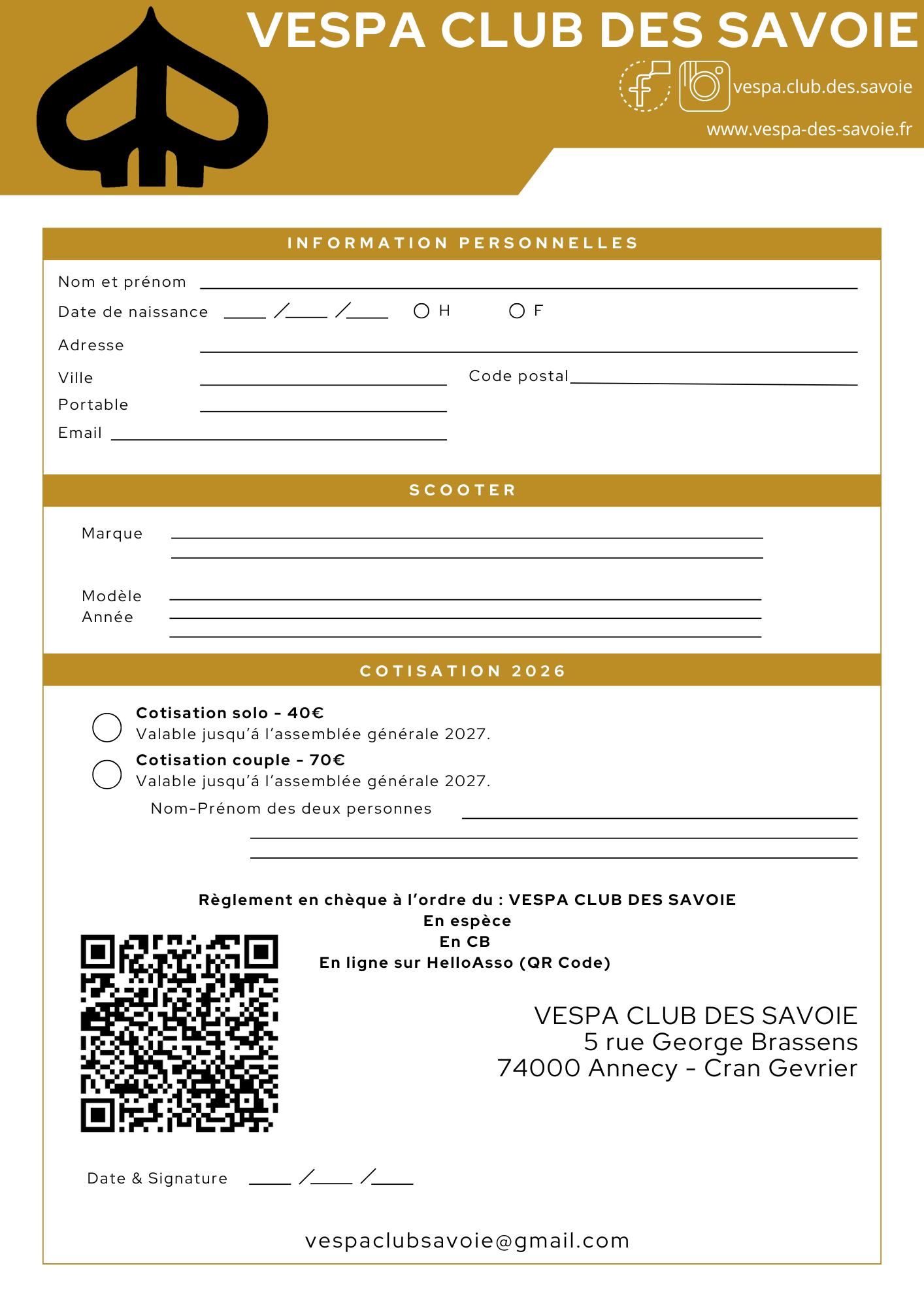 Cotisation en année civile (1er janvier jusqu'à l'Assemblée Générale 2027.)